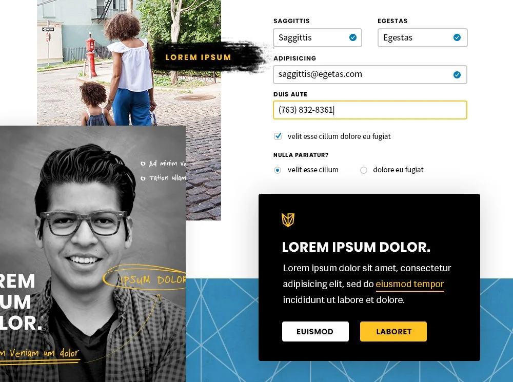 Updated yellow is used as the primary brand color and used to call attention to important information.