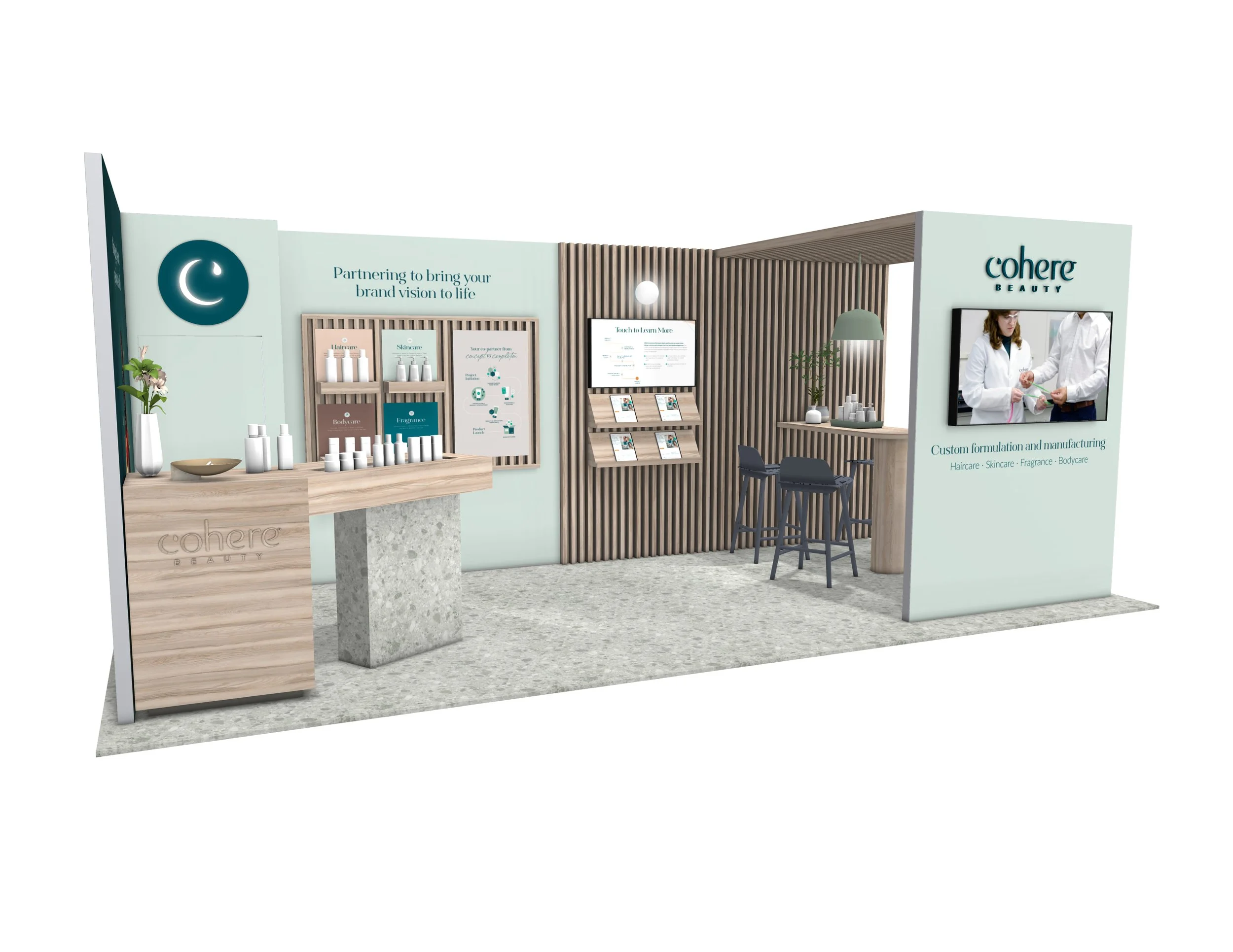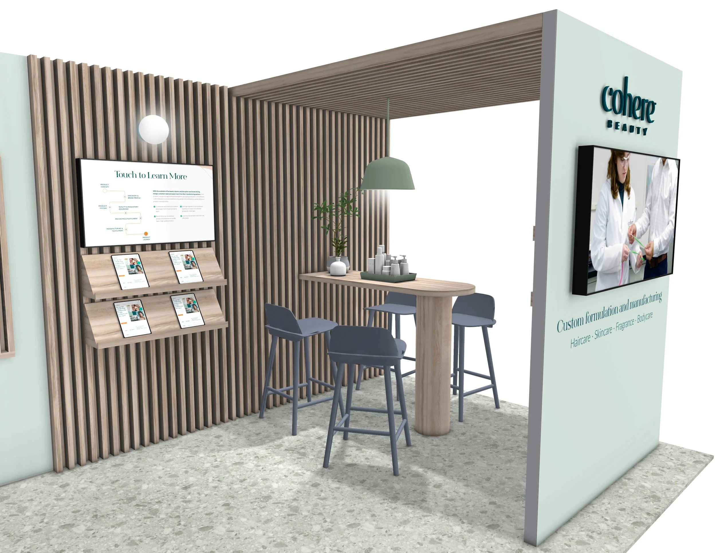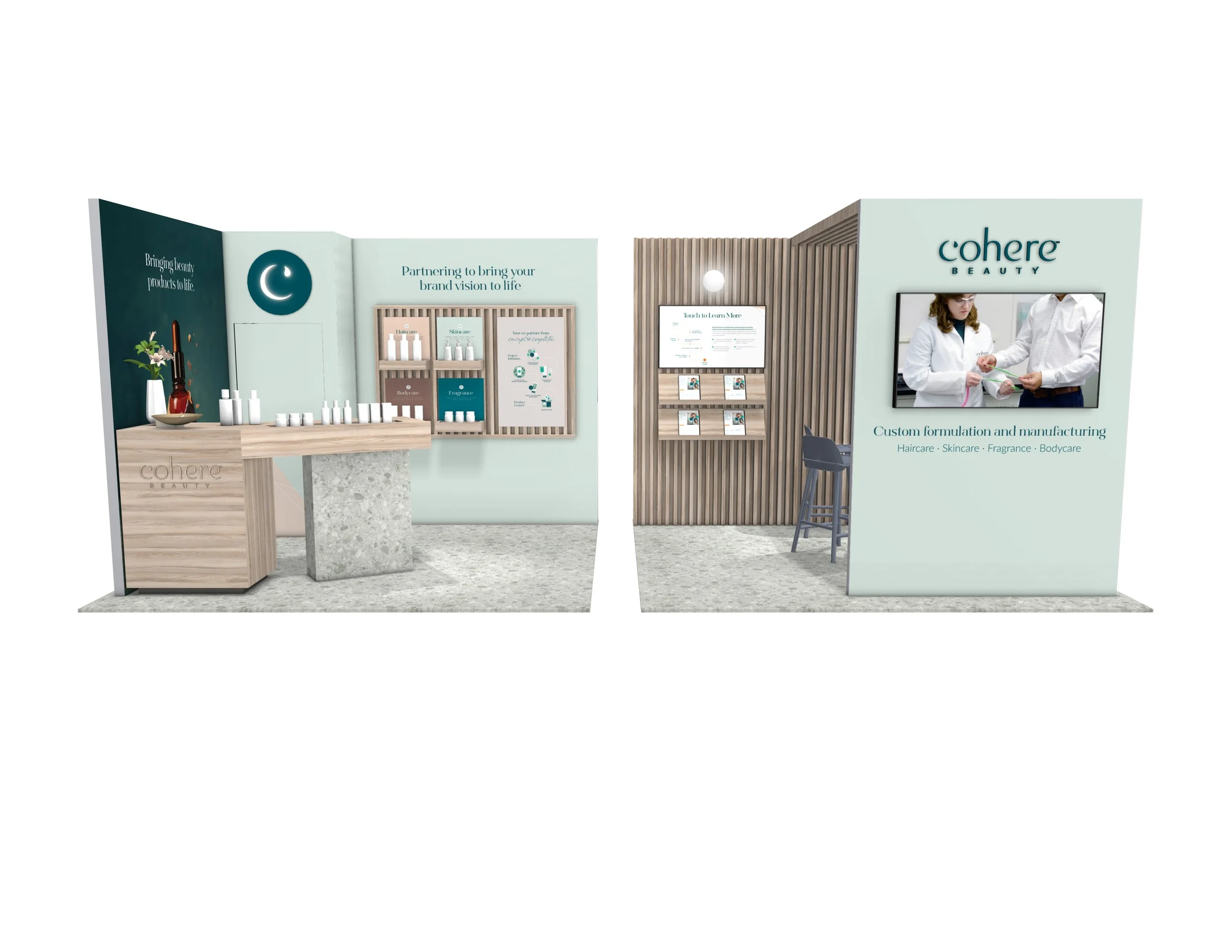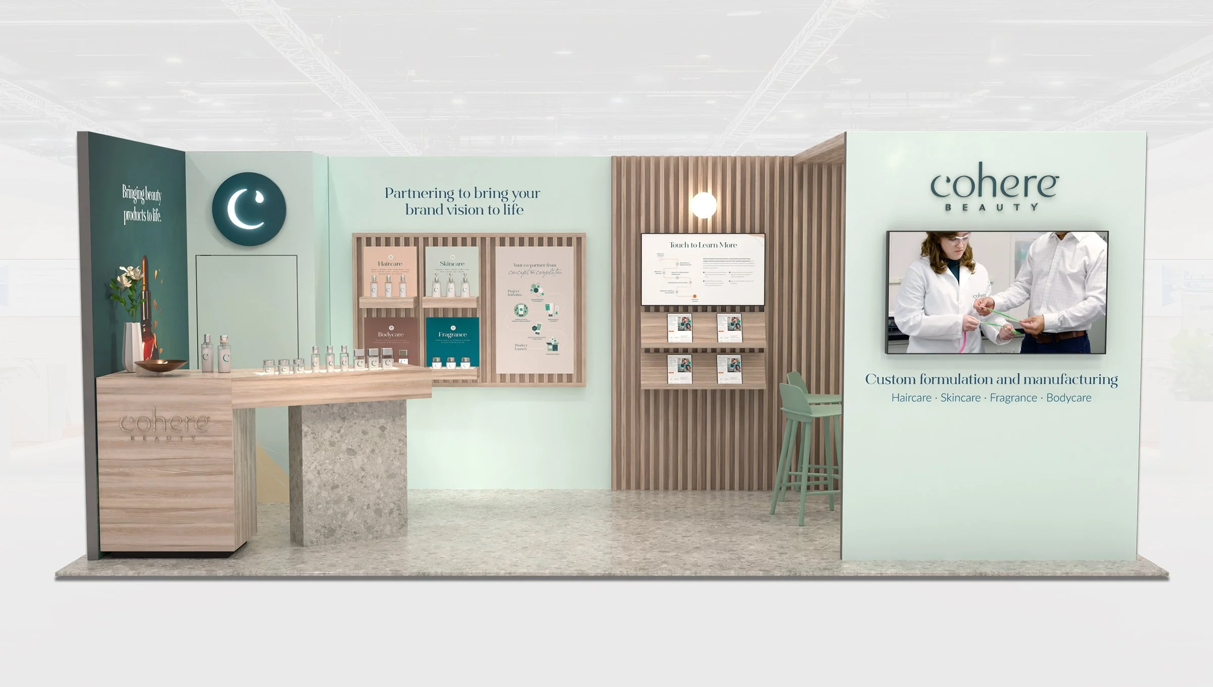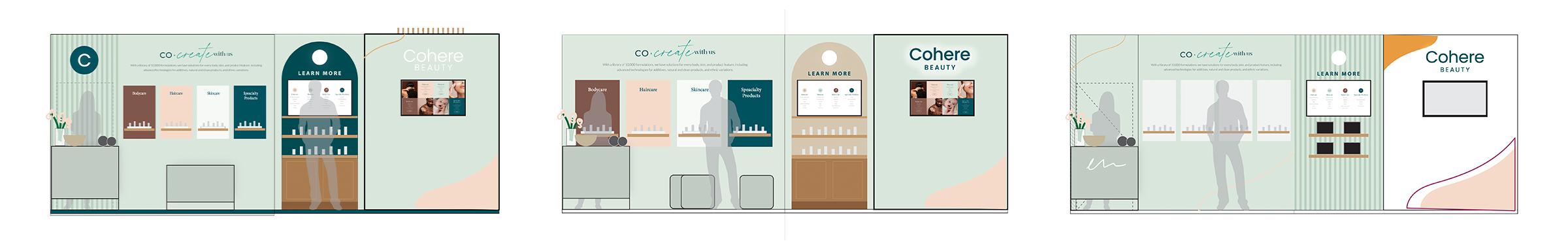 To make a strong first impression, the booth design needed to echo the new branding and campaign developed by our brand team. Rooted in the idea that “Cohere brings beauty brands to life,” the campaign’s strategic direction became the creative foundation for the booth.