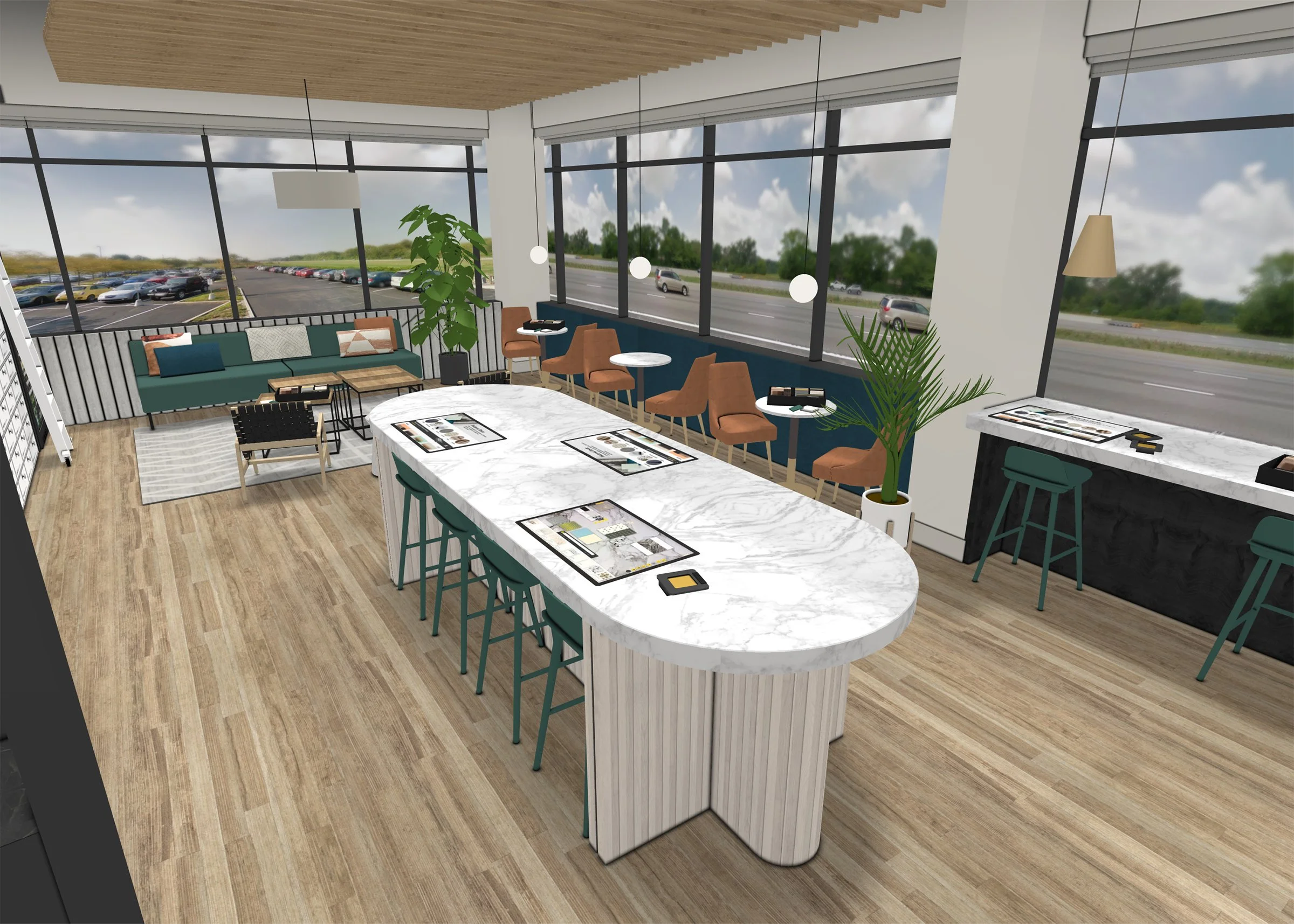 As part of a 20,000+ sq. ft. transformation of Delta Faucet Company’s (DFC) headquarters in Carmel, IN, I led the strategy, concept, and design execution of the Design Resource Center, a 680 sq. ft. adaptive reuse project converting a low-traffic commercial showroom into a high-value branded environment. The Design Resource Center reimagines the space as a multi-functional creative lounge, supporting internal team collaboration and external customer engagement during brand experience events.