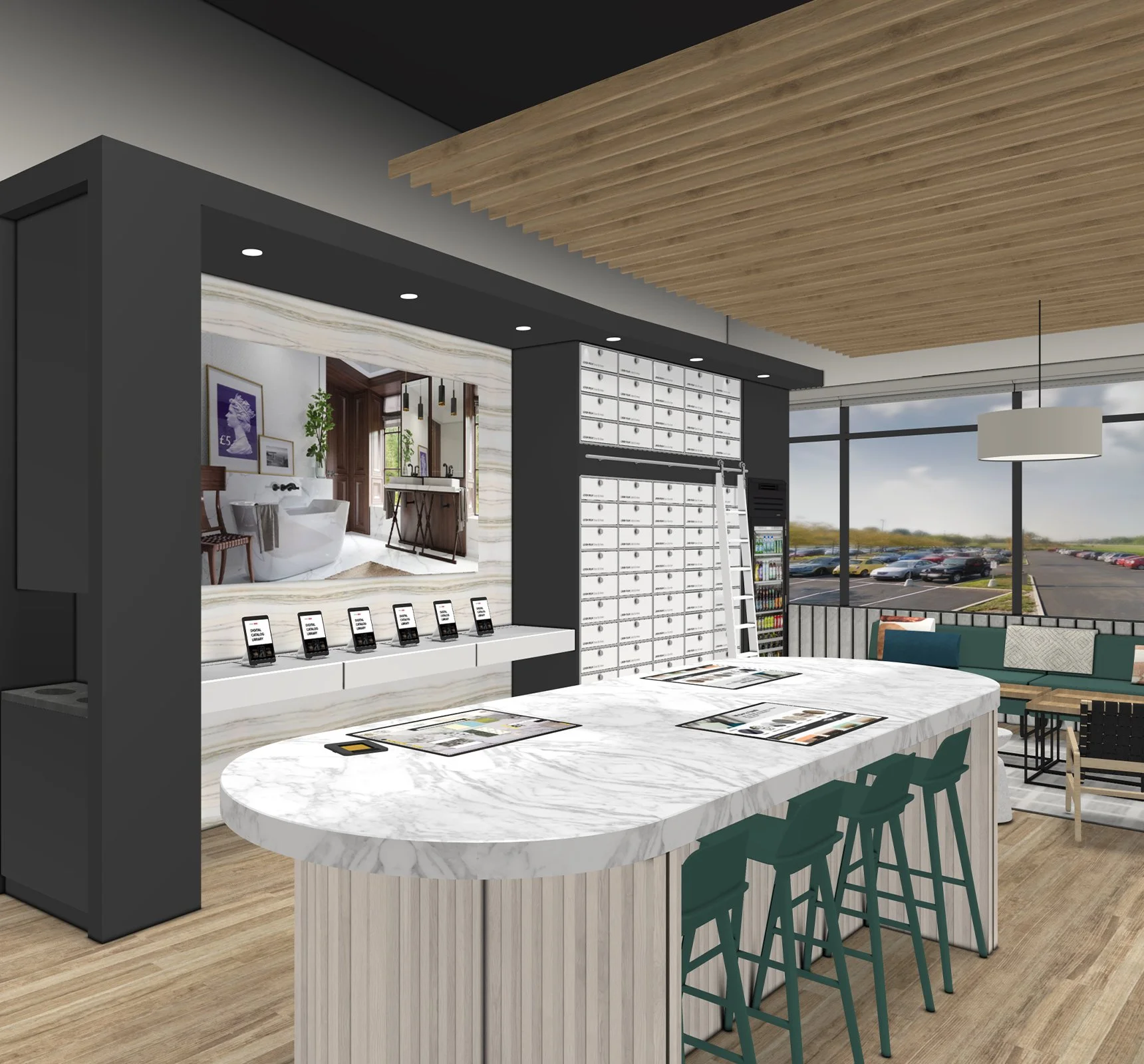 Partnership with Material Bank’s smart swatch technology displays updatable, on-trend materials alongside Brizo and Delta finishes, providing real-time inspiration.