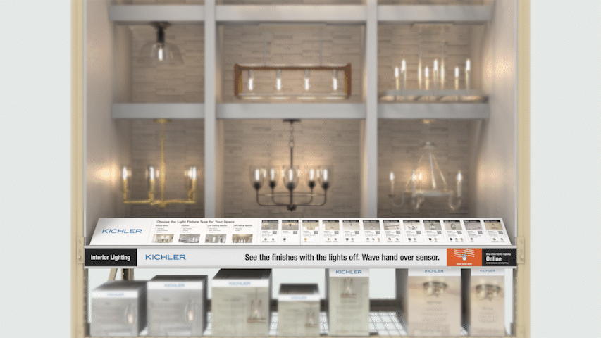 Kichler Lighting set its sights on becoming a national brand at The Home Depot, but the lighting aisle was already crowded and frustrating to navigate for most shoppers. Gaining shelf space meant delivering an in-store experience that could not only outperform national competitors, but also accommodate and meet the needs of two distinct audiences: professional contractors who seek quick access to detailed info and style-conscious homeowners who need extra help and reassurance.